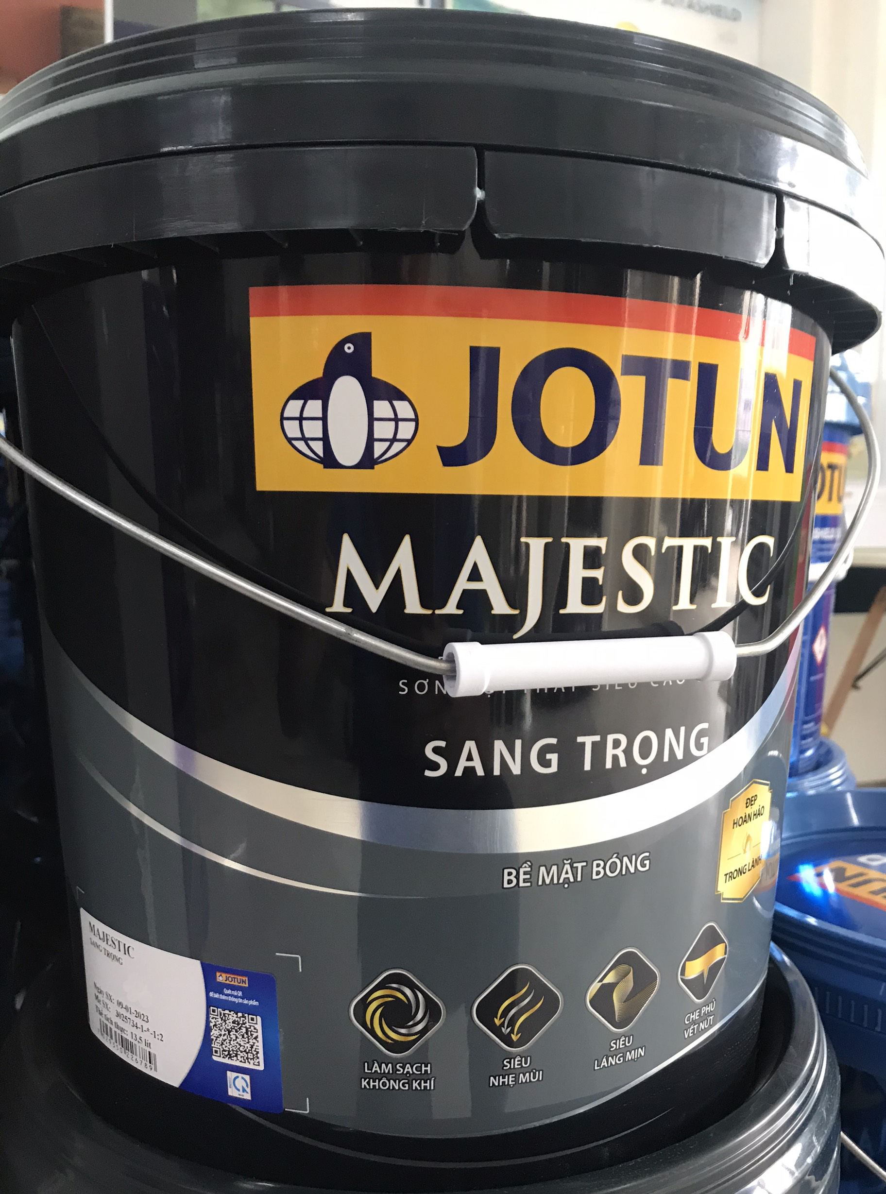 Sơn Jotun MAJESTIC Bóng Sang Trọng là sự đảm bảo cho một ngôi nhà đẹp hoàn hảo, an toàn và khỏe mạnh cho cả gia đình. Sản phẩm không chỉ mang đến bề mặt tường bóng sang trọng, siêu láng mịn bền lâu, mà còn giúp lọc và nâng cao chất lượng không khí trong nhà nhờ công nghệ Clean Air - Làm Sạch Không Khí cùng tính năng Siêu Nhẹ Mùi tuyệt vời.